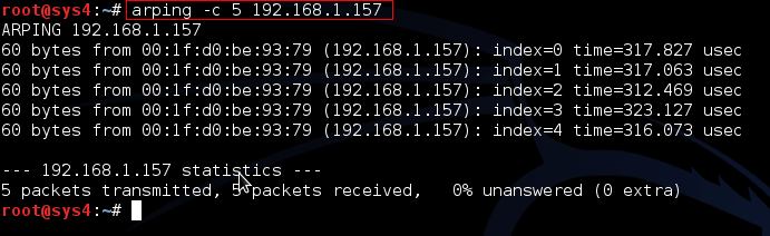 Command: arping –c 4 192.168.0.157