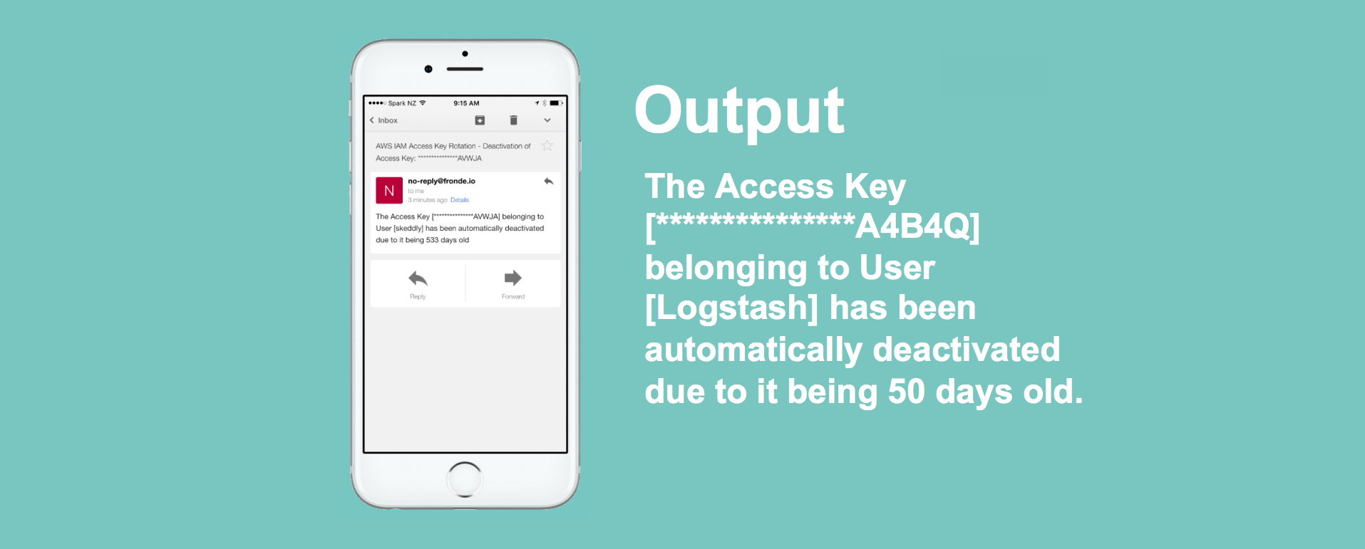 3. aws lambda invoke --function-name AccessKeyRotation report.log --region us-east-1