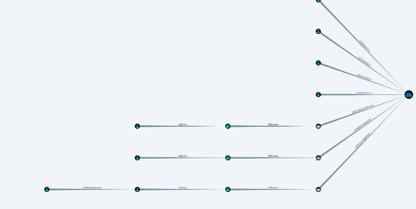 BadZure makes three attack vectors for gaining more privileges by simulating service principal abuse situations. It does this by making sure that Azure AD roles, Graph rights, and application ownerships cause misconfigurations. Below is a BloodHound-made image that shows the attack paths that BadZure makes.