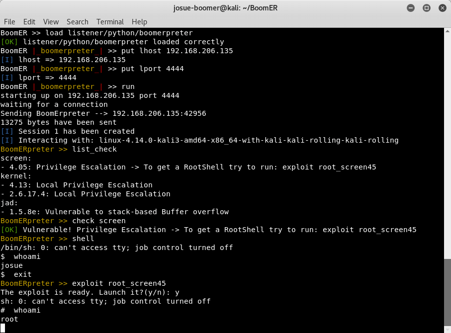 BoomER is an open source framework, developed in Python. The tool is focused on post-exploitation, with a main objective, the detection and exploitation of local vulnerabilities, as well as the collection of information from a system, such as the installed applications they have.