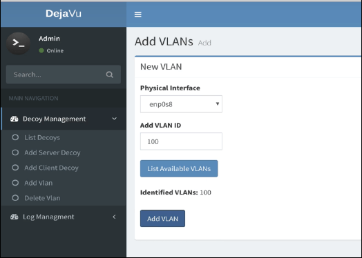 - Select Decoy Management -> Add VLAN