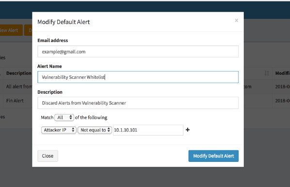 - Alerts can be configured based on various parameters. Example – Don’t send alerts from IP – 10.1.10.101. If certain IP’s like in-house vulnerability scanner, SCCM etc. needs to be whitelisted.