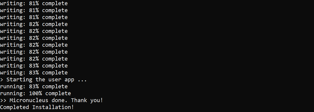 Once you choose your payload you will be prompted to insert your desired board into the computer. From there it will install the desired payload and display this when completed: