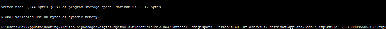 Head to the Duckyspark GitHub Page to see how to create your translated .ino file from a RubberDucky script. After that load your .ino file into Arduino IDE. Make sure Verbose is on inside Preferences and compile your code. Open the terminal output below and look for the .hex file location. It should be in a temp directory in your AppData or equivalent on MacOS. Here’s and example: