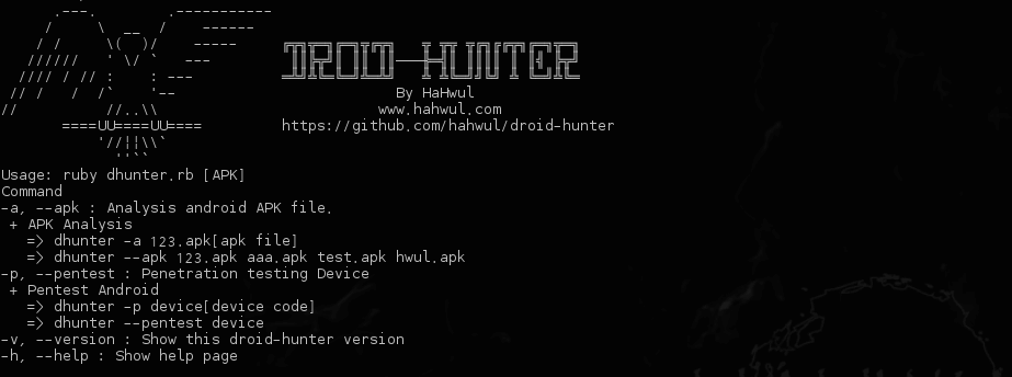 git clone https://github.com/hahwul/droid-hunter.git cd droid-hunter
