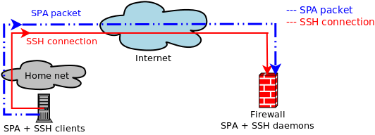That is, a firewall running on a host has a default-drop policy against all incoming SSH connections so that SSHD cannot be scanned, but a SPA daemon reconfigures the firewall to temporarily grant access to a passively authenticated SPA client:
