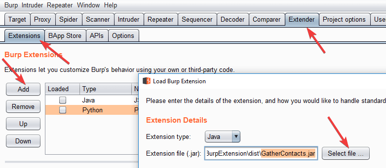 Click Add–>SelectFile … and browse to the “GatherContacts.jar” file that you download from this repository.