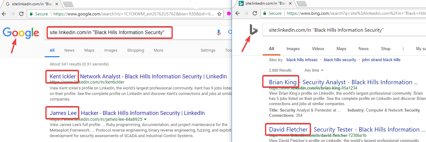 Configure your browser to use Burp as a proxy as you normally would. From the browser, do a Google or Bing search of the following form (don’t forget the “/in” on the end of “linkedin.com”: