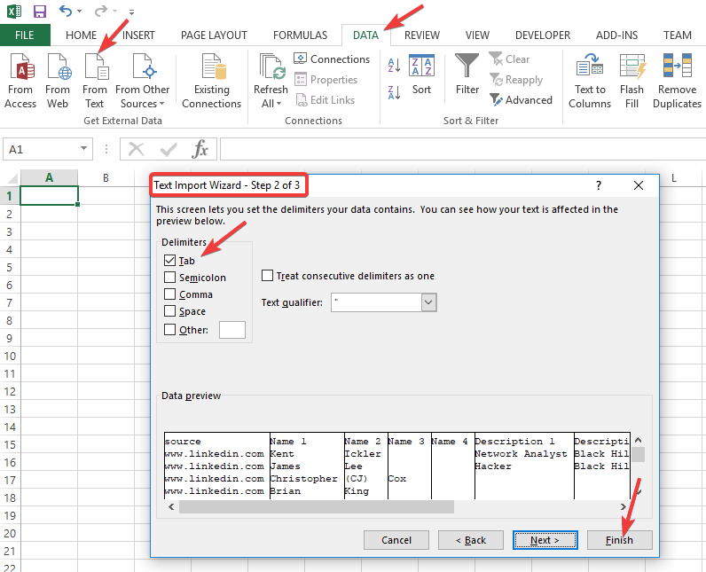 You can gather a large list of employee names quickly and easily with this method. Try importing the list into Microsoft Excel where you can use formulas to turn employee names into the appropriate username format such as first initial followed by last name.