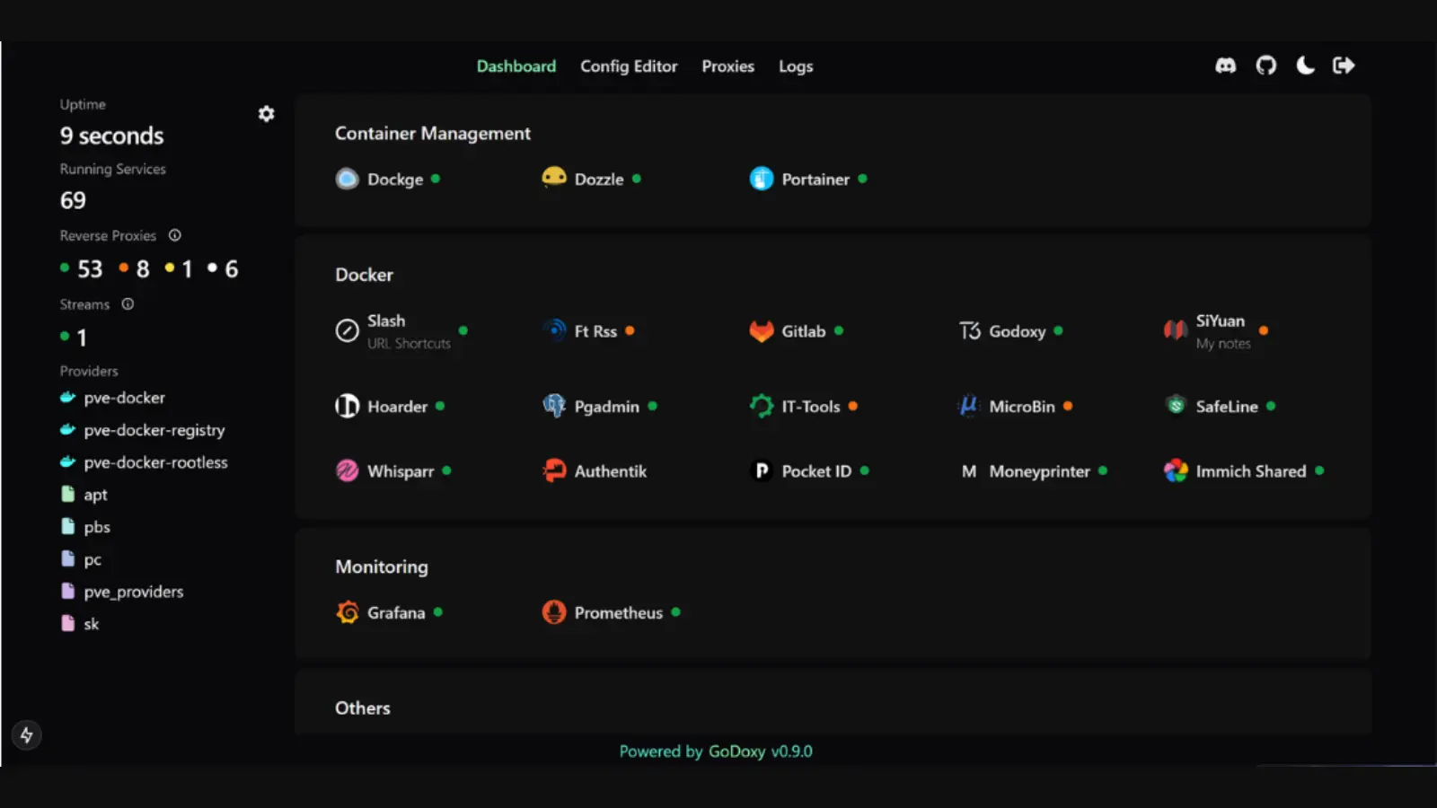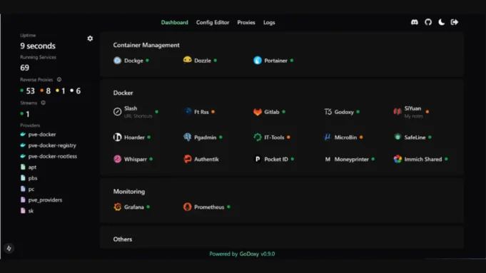 GoDoxy is a lightweight, straightforward, and high-performance reverse proxy tool written in the Go programming language. It is designed to simplify managing web traffic, offering a WebUI for configuration and monitoring.