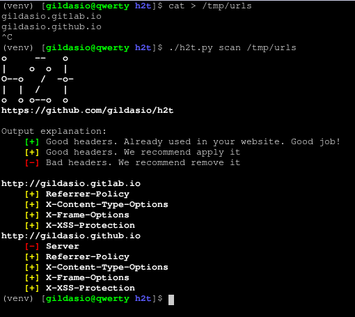H2T is a simple tool to help sysadmins to hardening their websites. Until now h2t checks the website headers and recommends how to make it better.