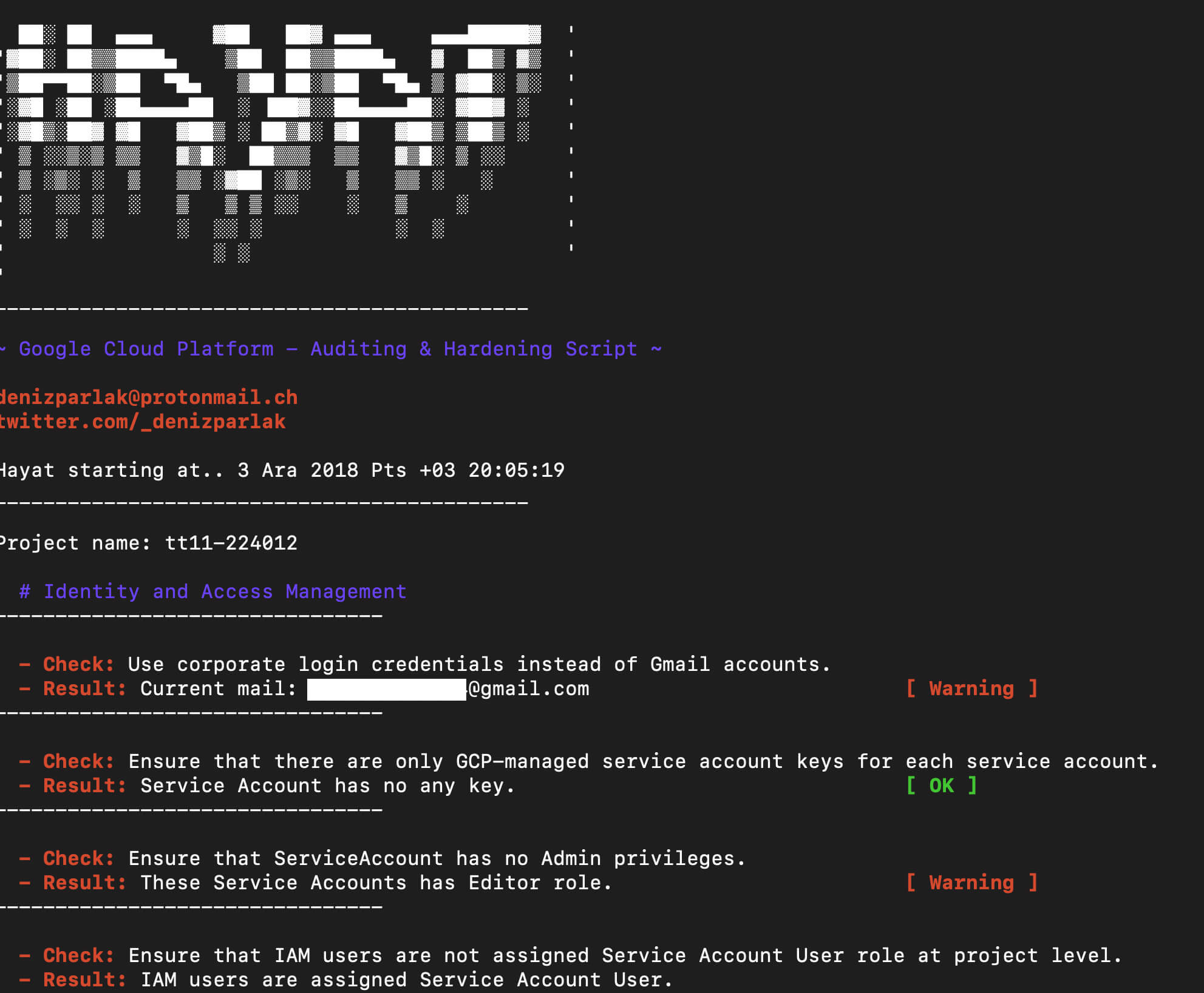 Hayat tool used for Google Cloud Platform Auditing & Hardening Script.