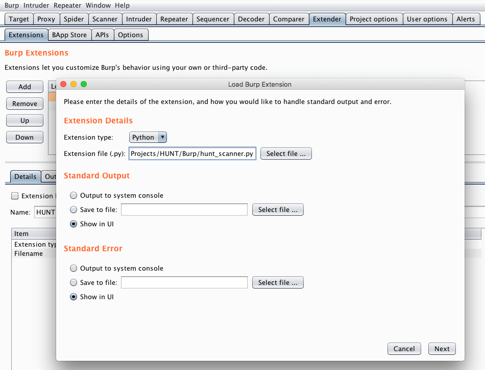 Installing HUNT Suite for Burp Suite Pro/Free