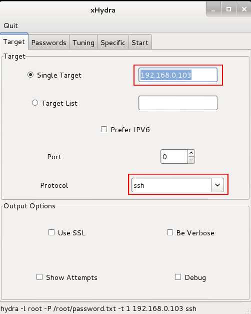 Step 2: Set Target & protocol in the target tab.<here 192.168.0.103><use your target>