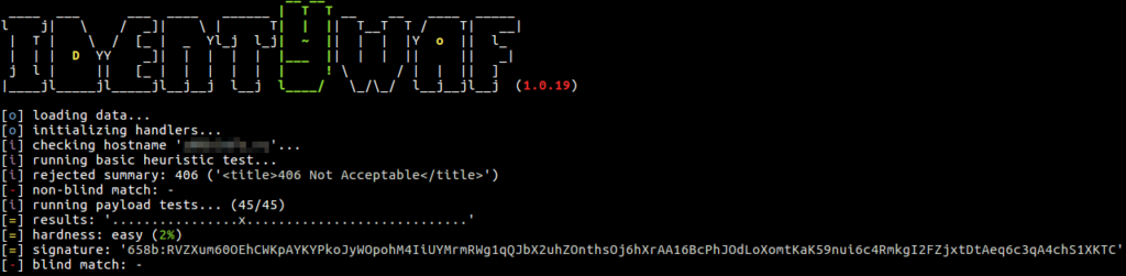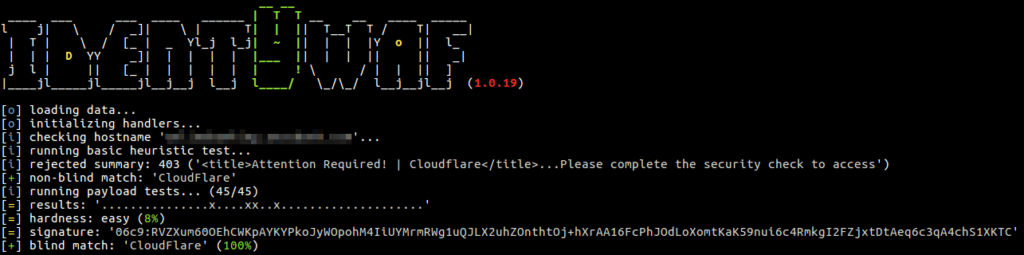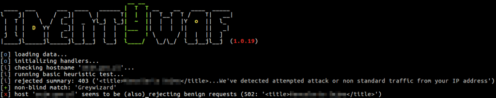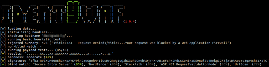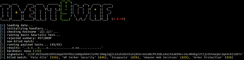 Blind inference is being done by inspecting responses provoked by a set of predefined offensive (non-destructive) payloads, where those are used only to trigger the web protection system in between (e.g. http://<host>?aeD0oowi=1 AND 2>1).
