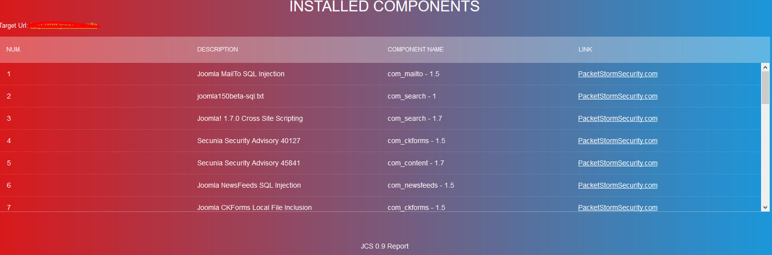 This version supports Exploitdb and Packetstorm vulnerabilities to create a database for joomla components it can also create a Report in HTML for you.