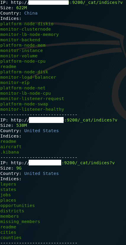 root@kali:~/# python leaklooker.py –mongodb –couchdb –kibana –elastic –first 12 –last 14