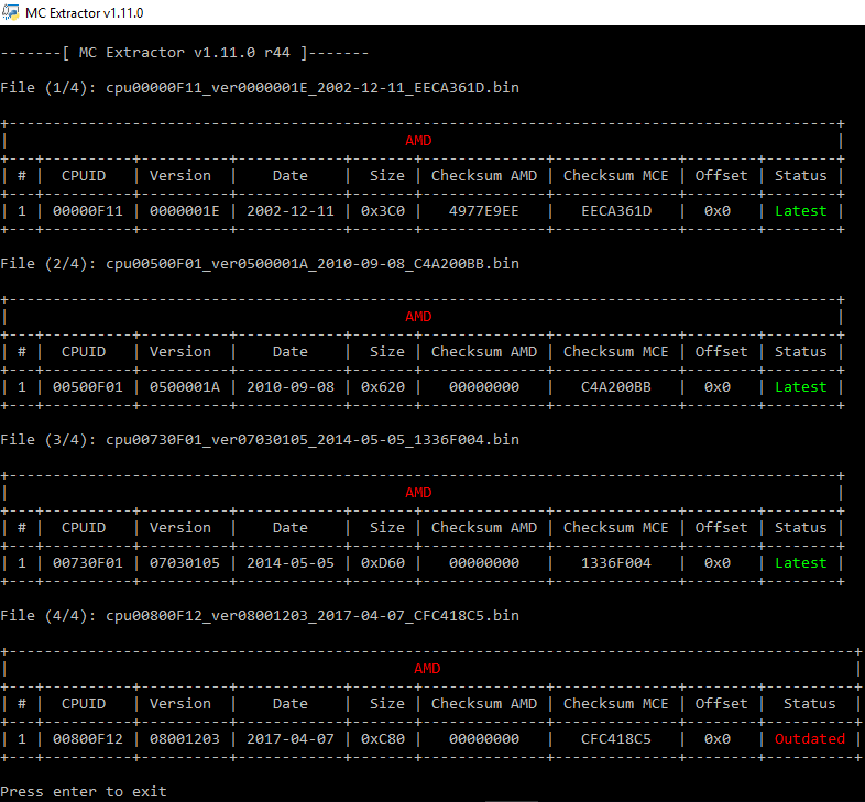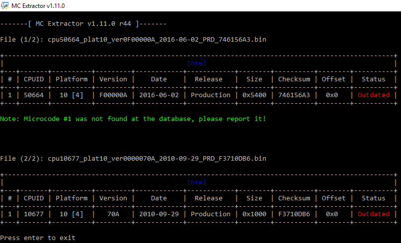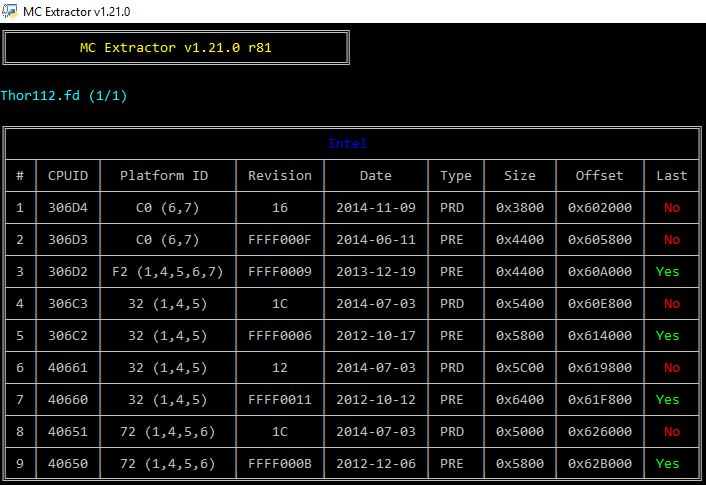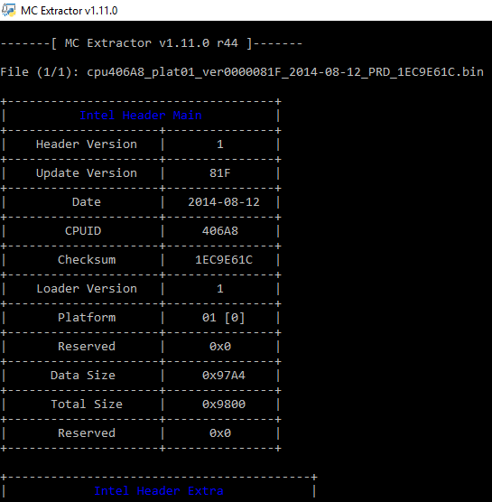 Moreover, with the help of its extensive database, MCExtractor is capable of uniquely categorizing all supported microcodes as well as check for any microcodes which have not been stored at the Microcode Repositories yet.
