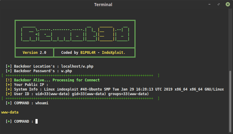 Equipped with a backdoor that has been Obfuscated which means that 100% FUD (FULLY UNDETECTABLE) in other words can penetrate the firewall of a server because of its ignorance if it’s a Malware, Written in Shell Script Language or commonly known as BASH by a 16 year old teenager.