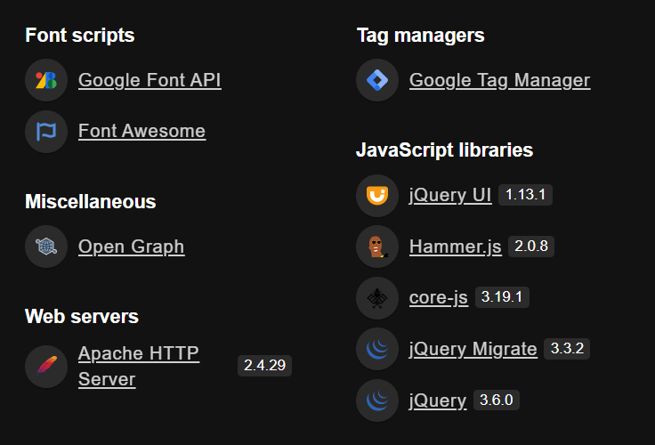 Furthermore, it uses various JavaScript libraries and Apache Webserver.