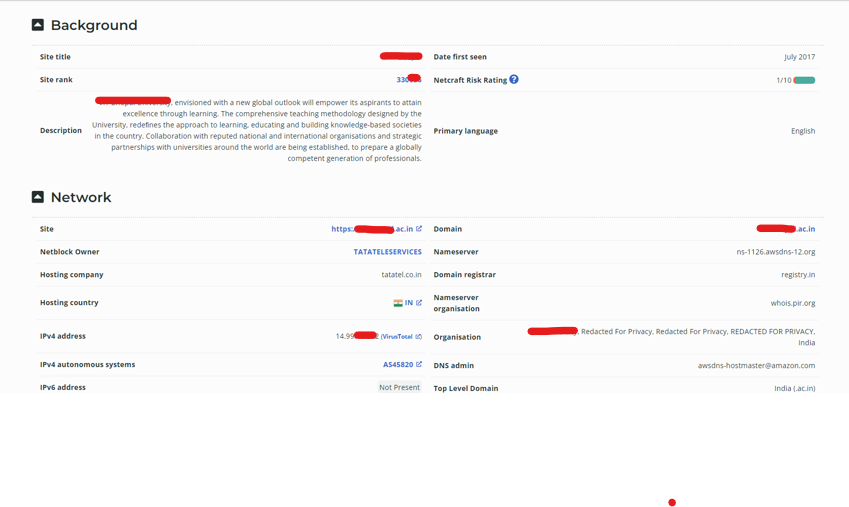 • Our target seems to use shared web hosting owned by TataTeleServices.