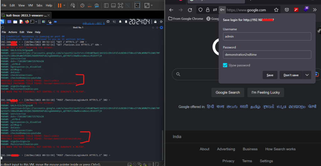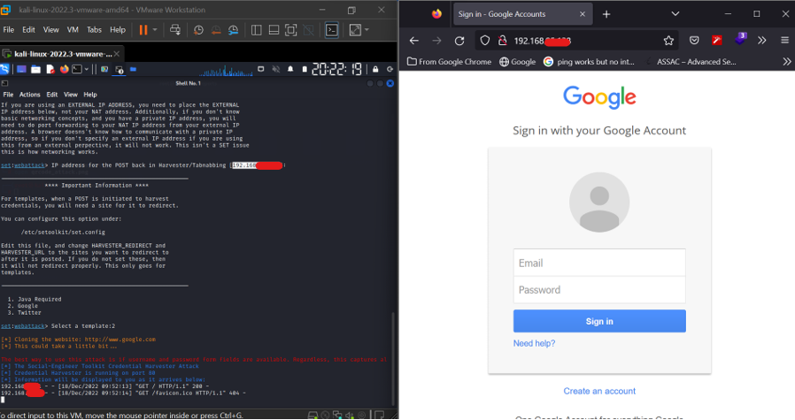 • The IP address shown above is hosting the fake Google sign-in page. Now an attacker can change the ip address into a URL using any online tool and can trick into opening it.