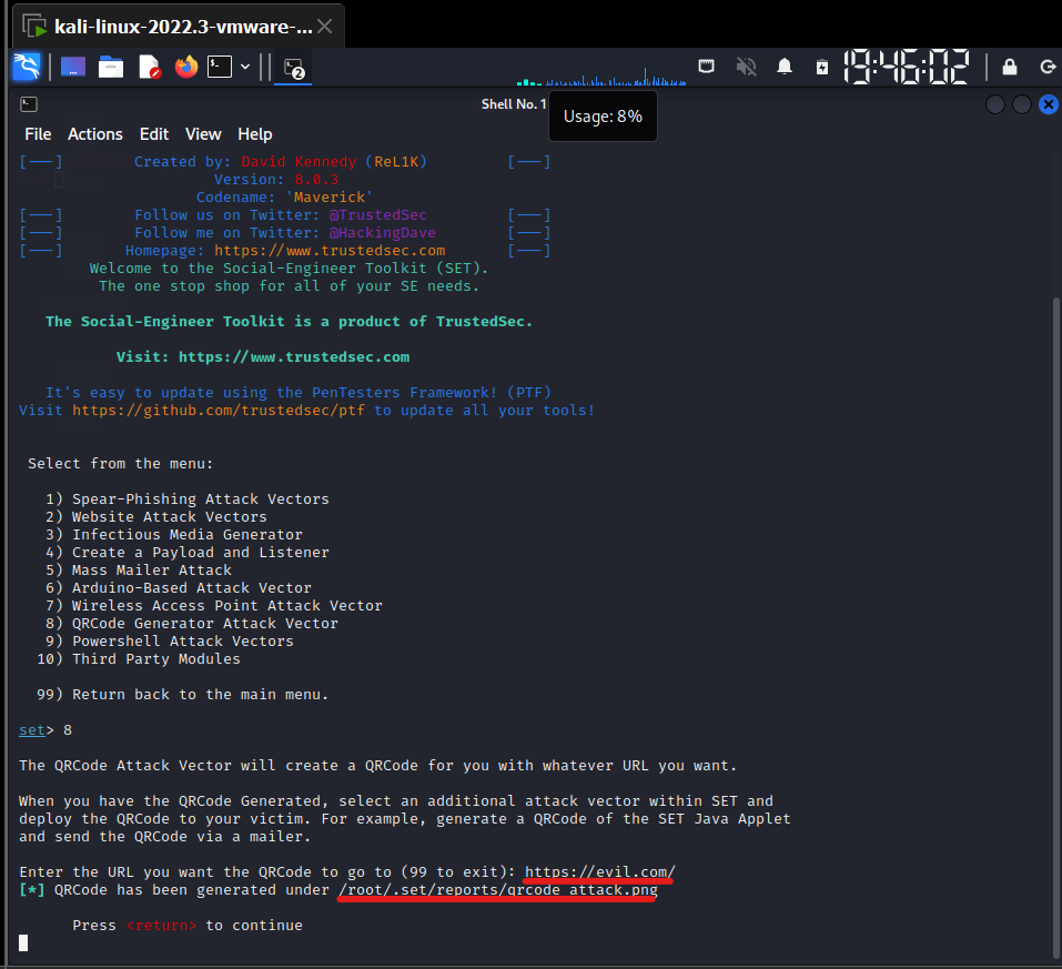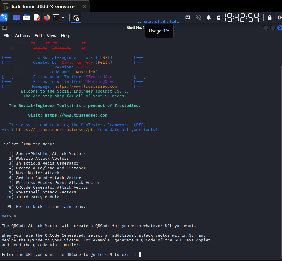 • Open the Social Engineering toolkit and Select QRCode generator from the menu.