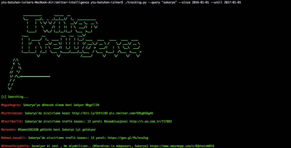python3 tracking.py --username "HaberSau" --since 2015-09-10 --until 2015-09-12 --maxtweets 10