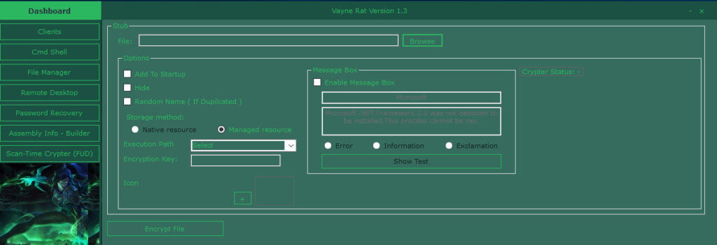 Vayne-RaT is Free and Open Source Remote Administration Tool Coded In C#.