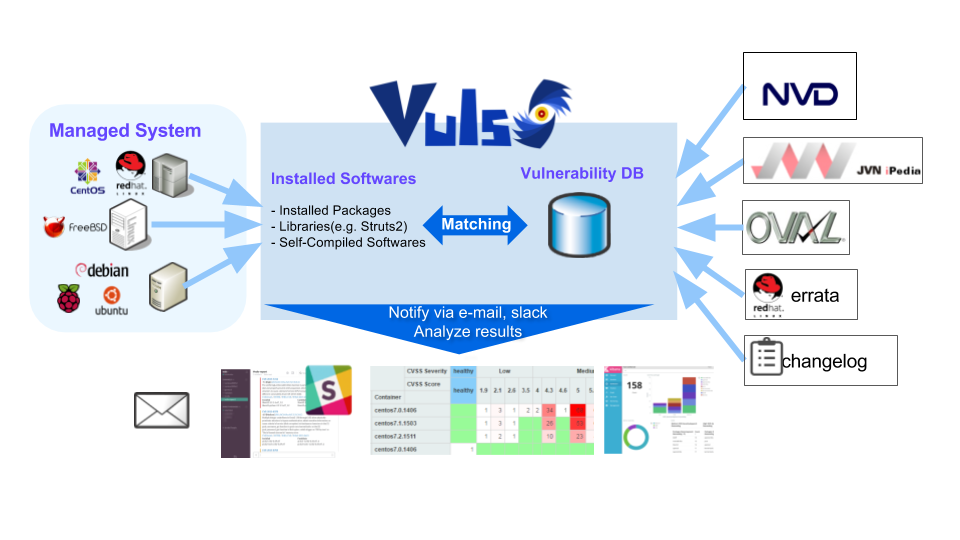 • Vuls works well with Continuous Integration since tests can be run every day. This allows you to find vulnerabilities very quickly.