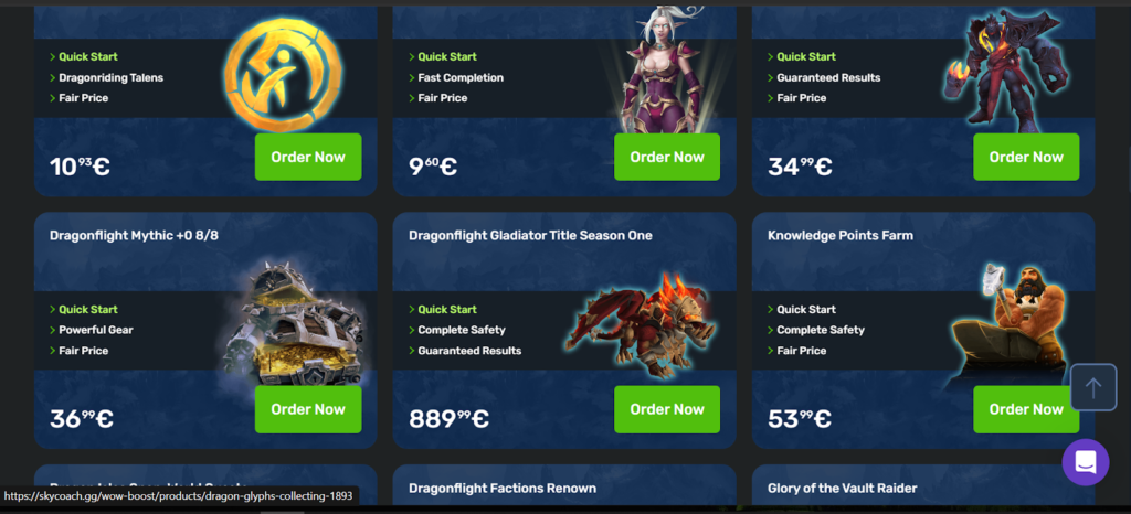 Skycoach allows players to approach the main mechanics of online projects more consciously, including World of Warcraft. If you interact with professionals, you can get high-quality training in the game of the selected class, buy the best equipment for each leveling stage due to a large supply of gold, pay for character leveling immediately before the Dragonflight update, and much more.