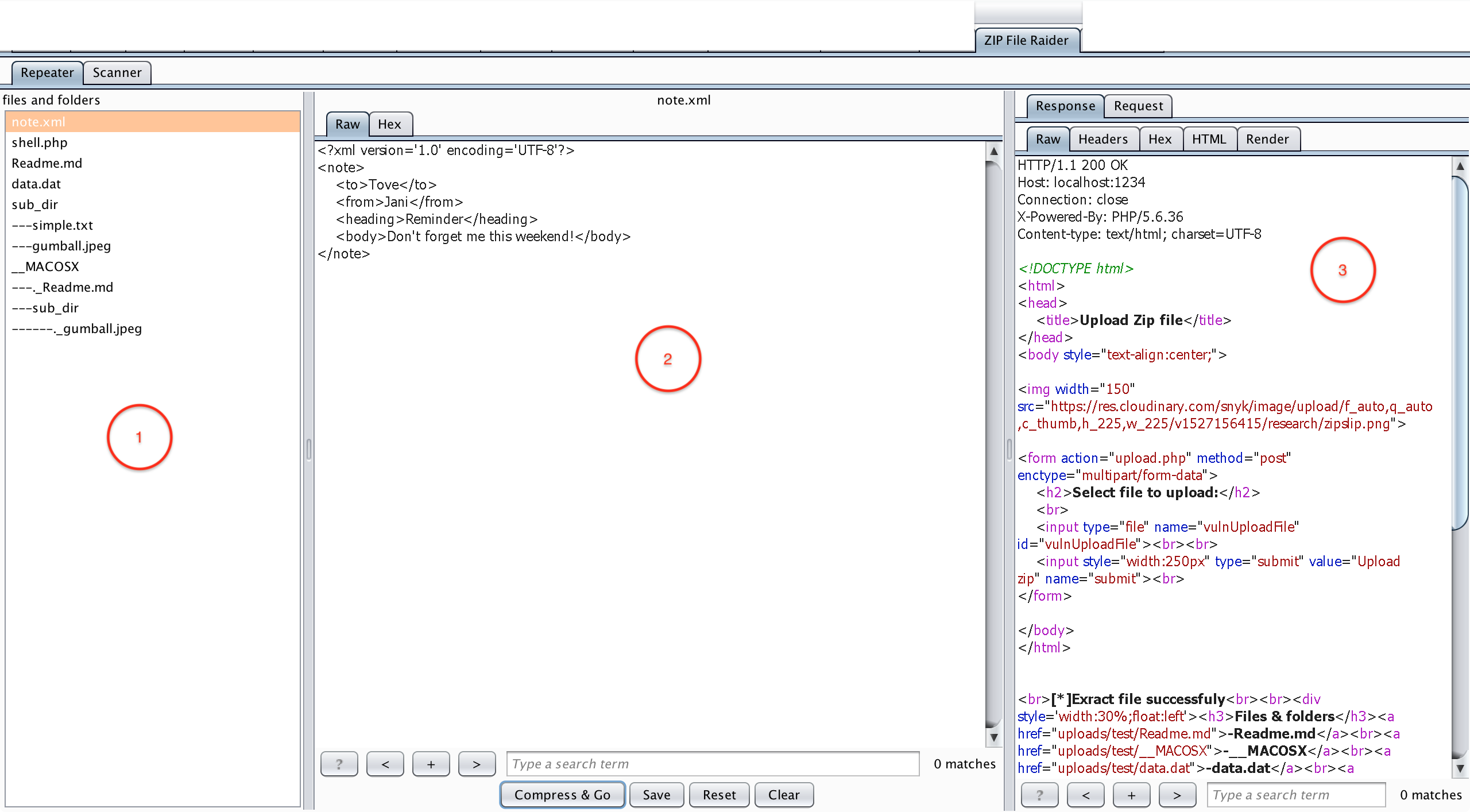 Send the HTTP request with a compressed file to the ZIP File Raider